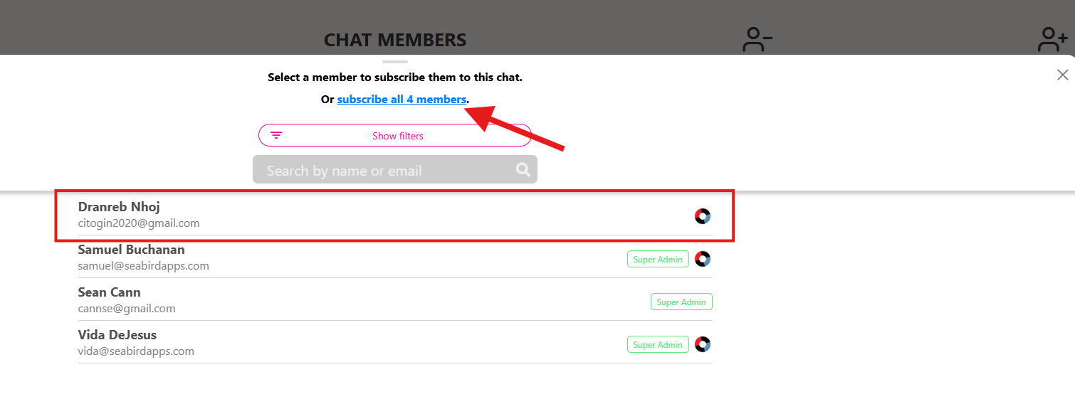 - Para agregar a todos de una vez, haz clic en Suscribirse a Todos los Miembros.